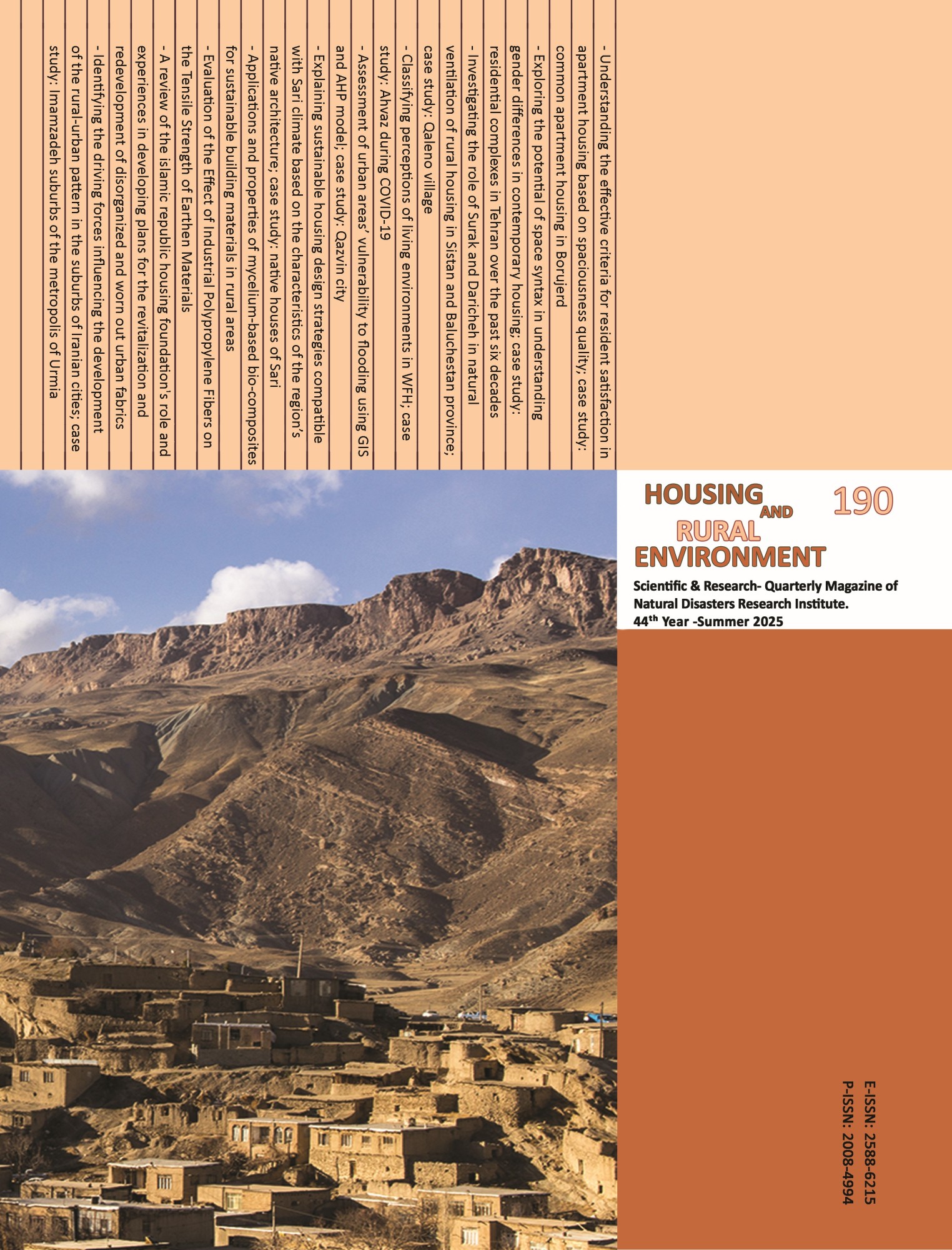 The journal of Housing and Rural Environment (HRE) is a peer-reviewed open-access quarterly journal in Persian (with extended English abstracts and bibliographies) devoted to the fields of rural architecture, village architecture, traditional architecture, Persian architecture, Persian gardens, rural planning and design, rural architecture, preservation of rural historical and cultural sites and textures, and local and modern construction technologies, published by the Natural Disasters Research Institute, Iran.